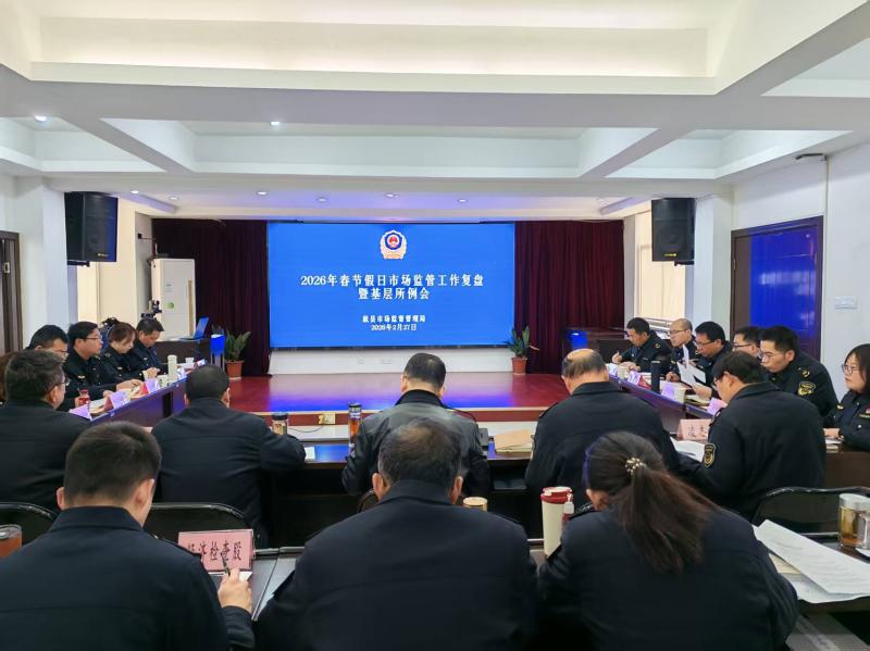 2026年2月27日,歙县市场监管局召开2026年春节假日市场监管工作复盘会,全面复盘春节假日市场监管工作成效,深入查摆问题短板,部署下一阶段重点任务,为“十五五”开局之年市场监管工作开好局、起好步确立基准线、树立风向标。局领导班子成员、各市场监管所及相关股室负责人参会。